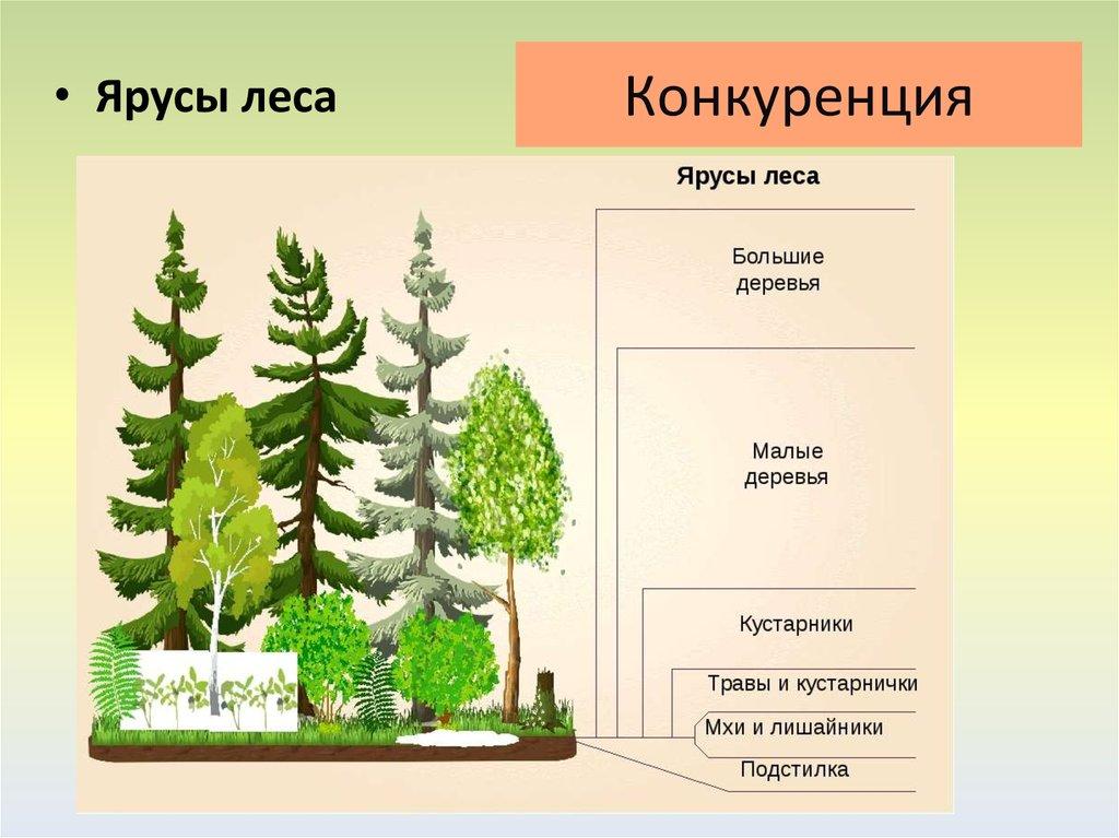 дифференциация в лесу растений на