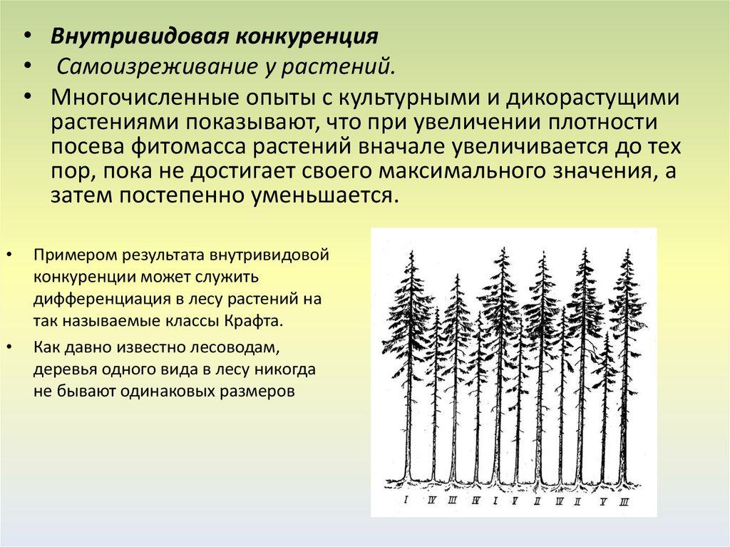 • Внутривидовая конкуренция• Самоизреживание у растений.