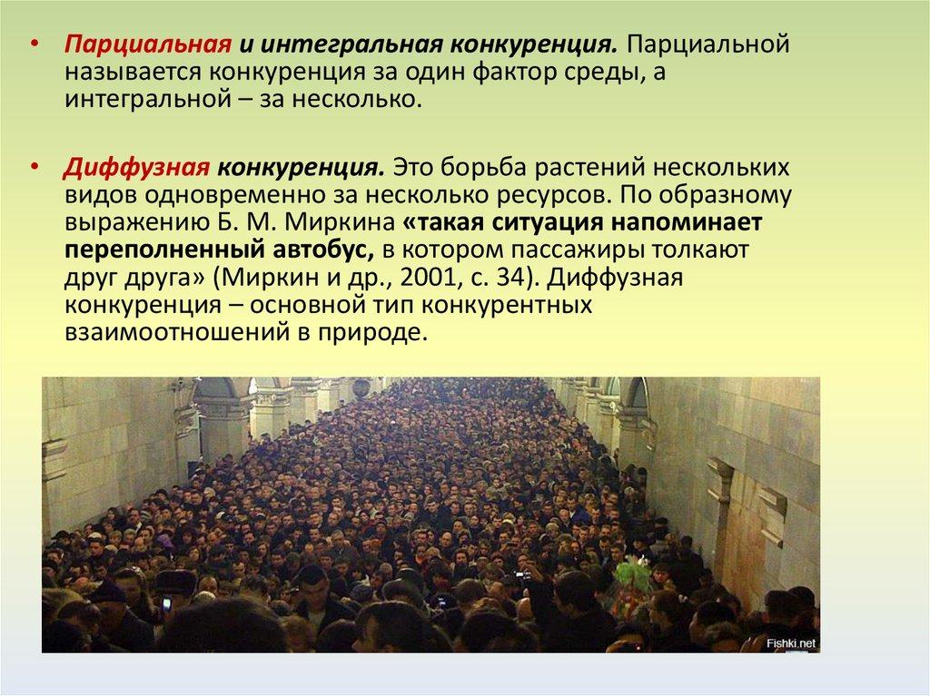 • Парциальная и интегральная конкуренция. Парциальнойназывается конкуренция за один фактор среды, а