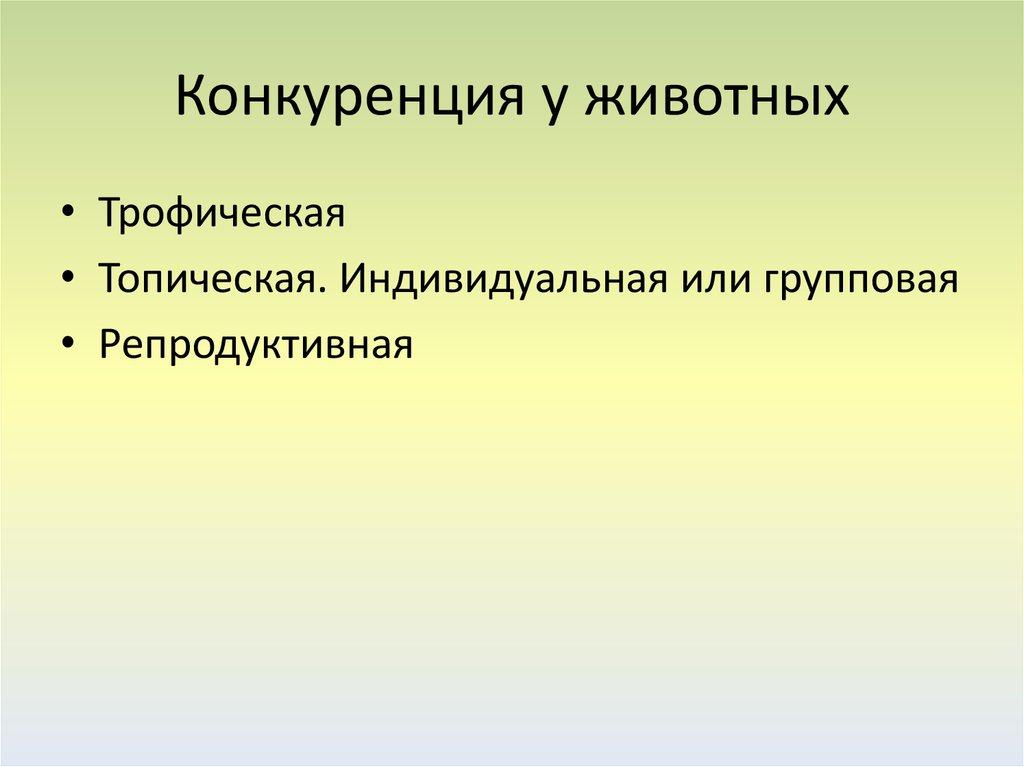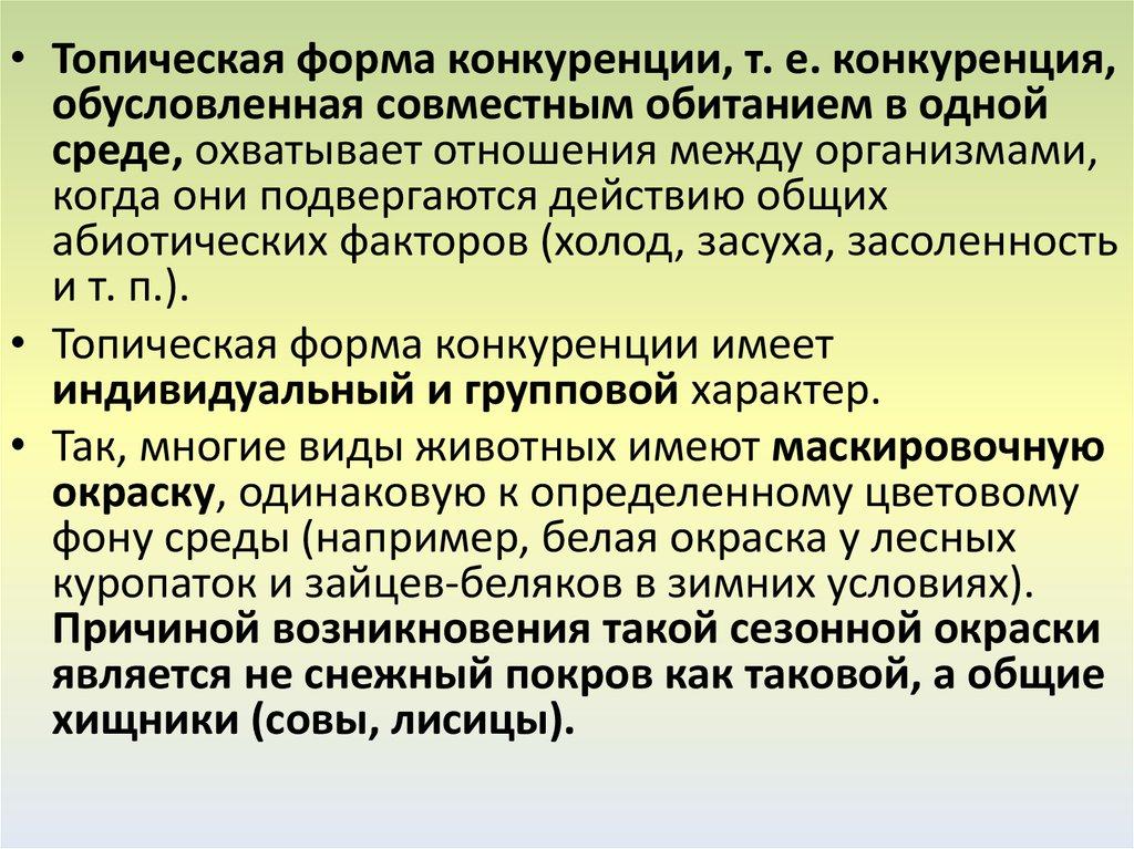 • Топическая форма конкуренции, т. е. конкуренция,обусловленная совместным обитанием в одной