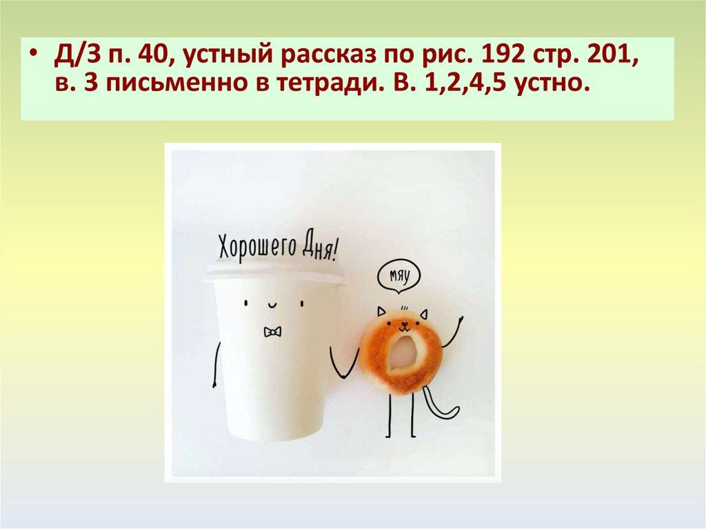 • Д/З п. 40, устный рассказ по рис. 192 стр. 201,в. 3 письменно в тетради. В. 1,2,4,5 устно.