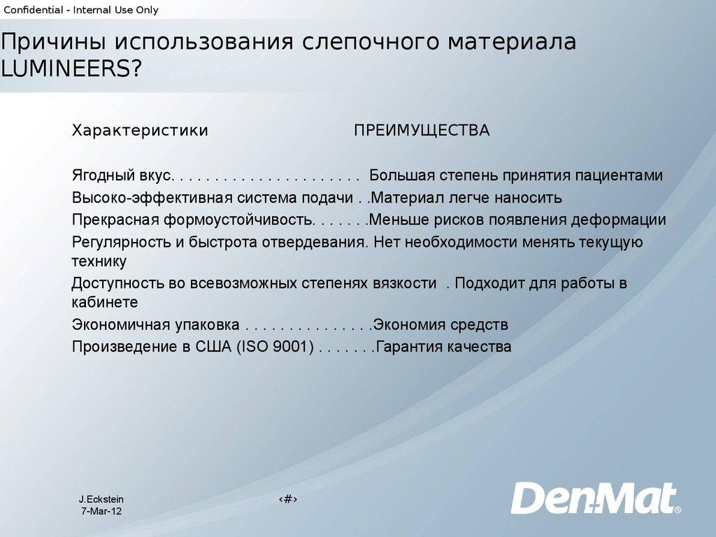 Confidential - Internal Use OnlyЧто такое слепочный материал LUMINEERS?