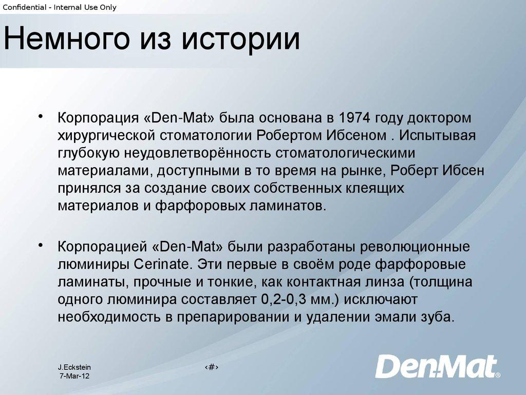 • Корпорацией «Den‑Mat» были разработаны революционные