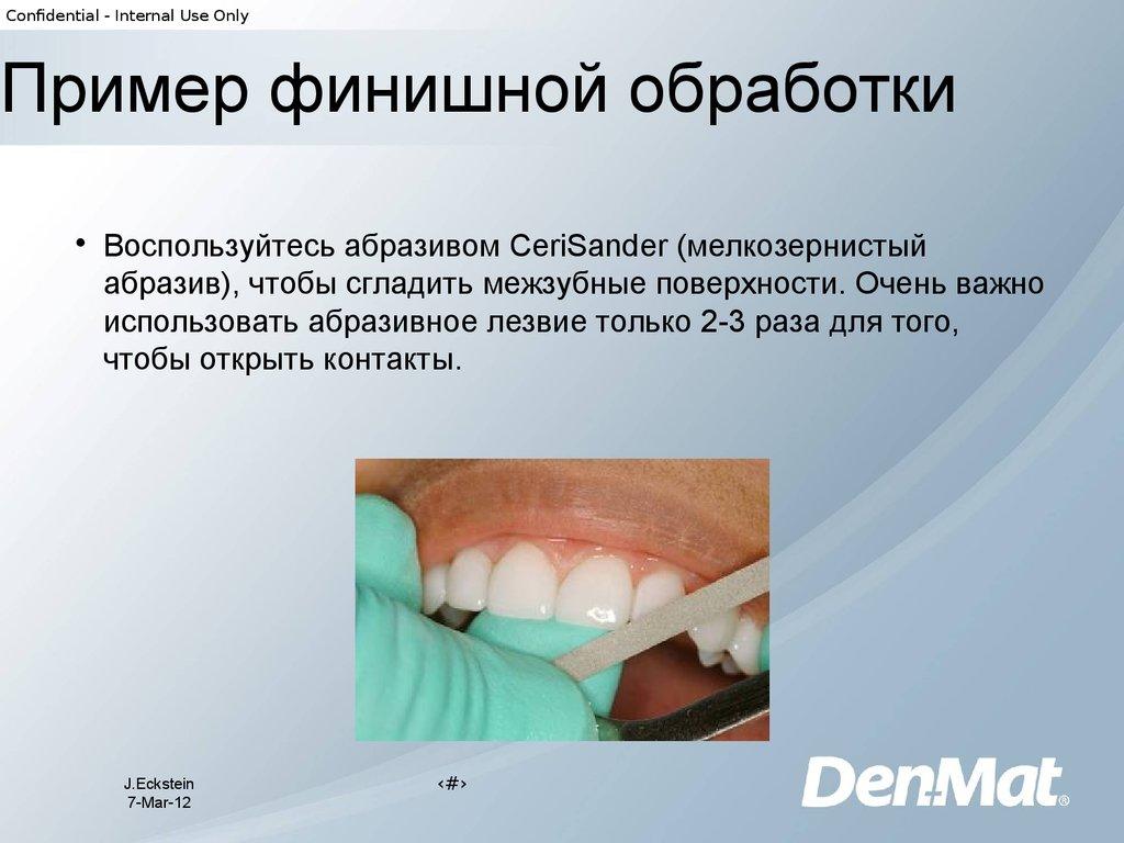 абразив), чтобы сгладить межзубные поверхности. Очень важно