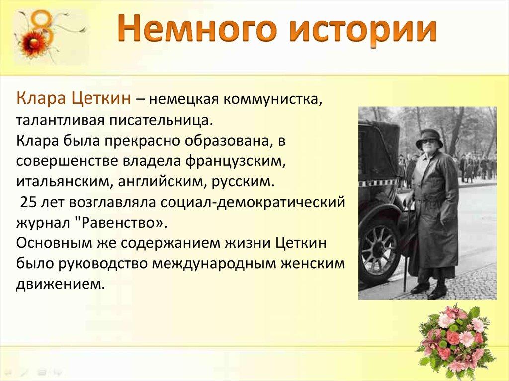 Клара Цеткин – немецкая коммунистка,талантливая писательница.