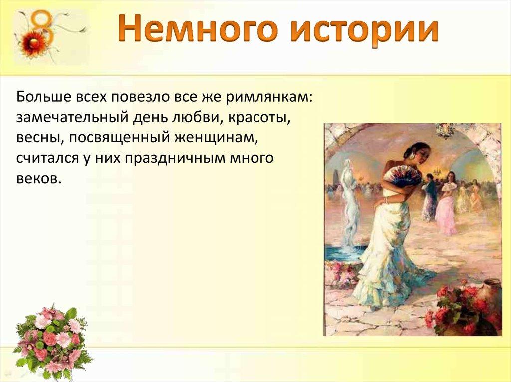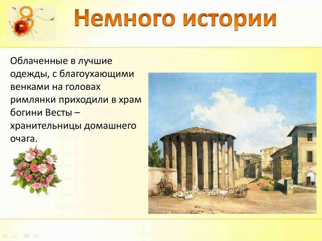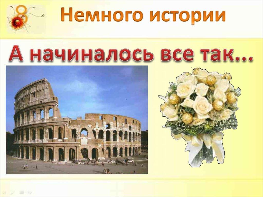 В этот день мужчины, юноши и мальчики не забывают оженщинах, девушках и девочках. В продаже появляются первые
