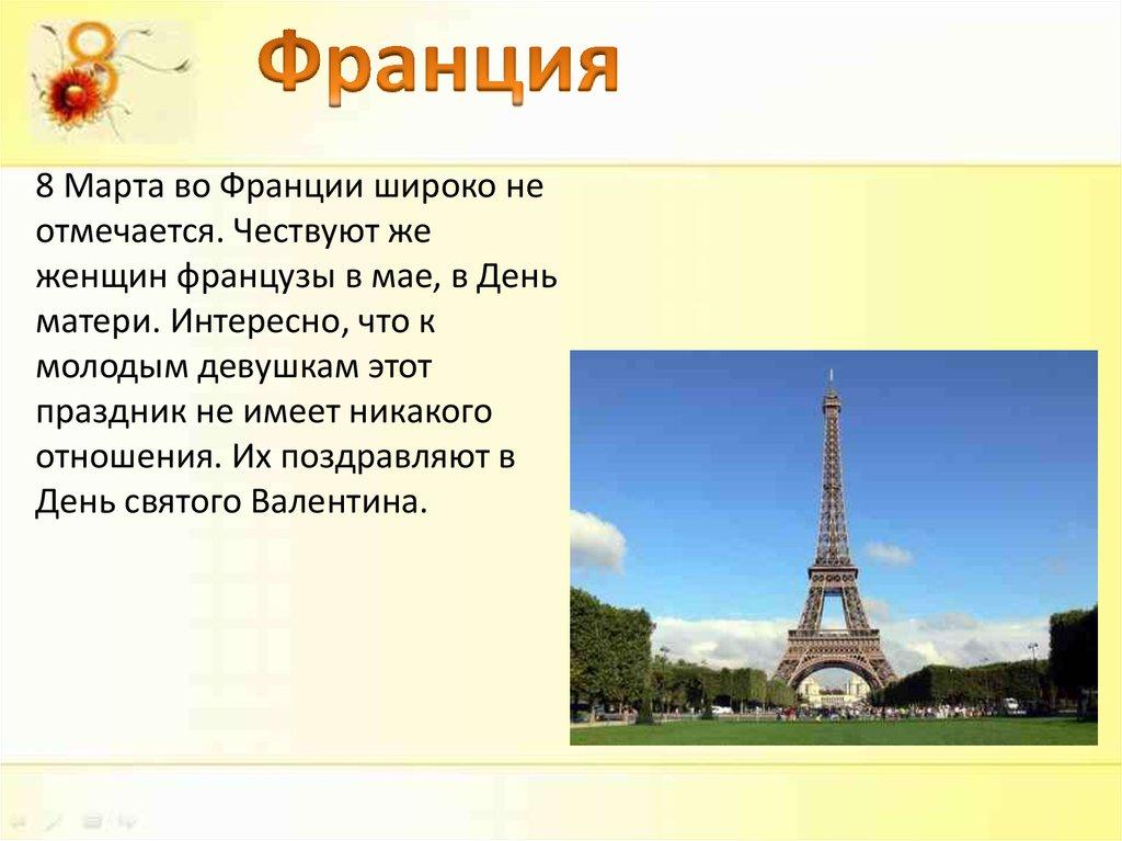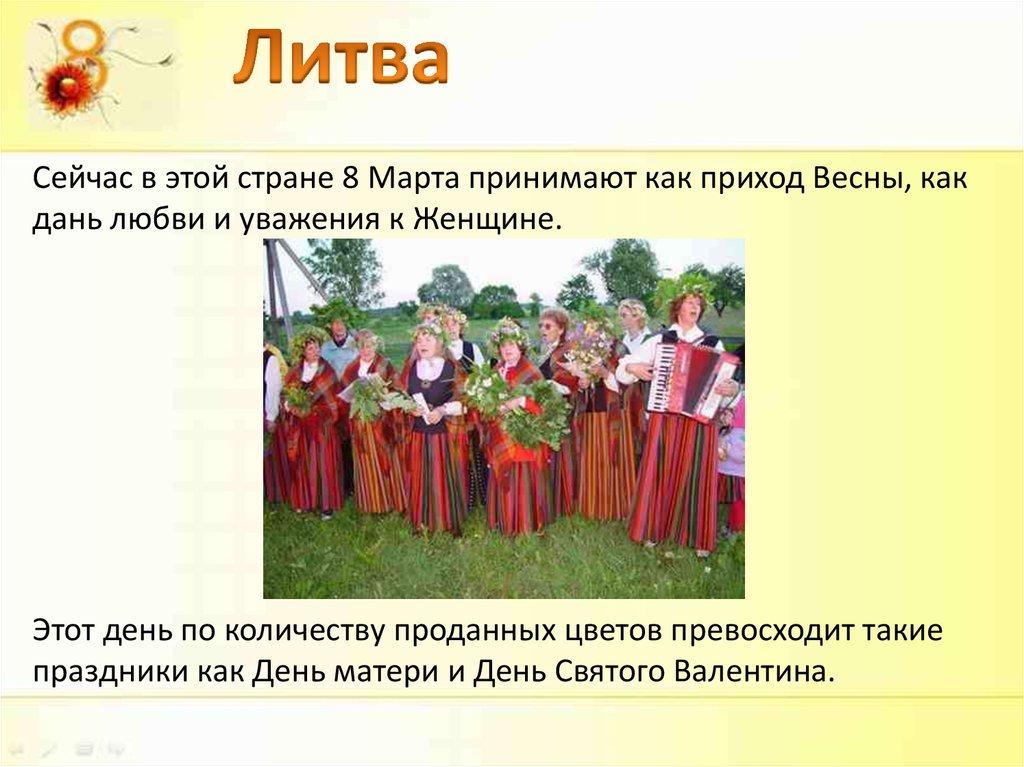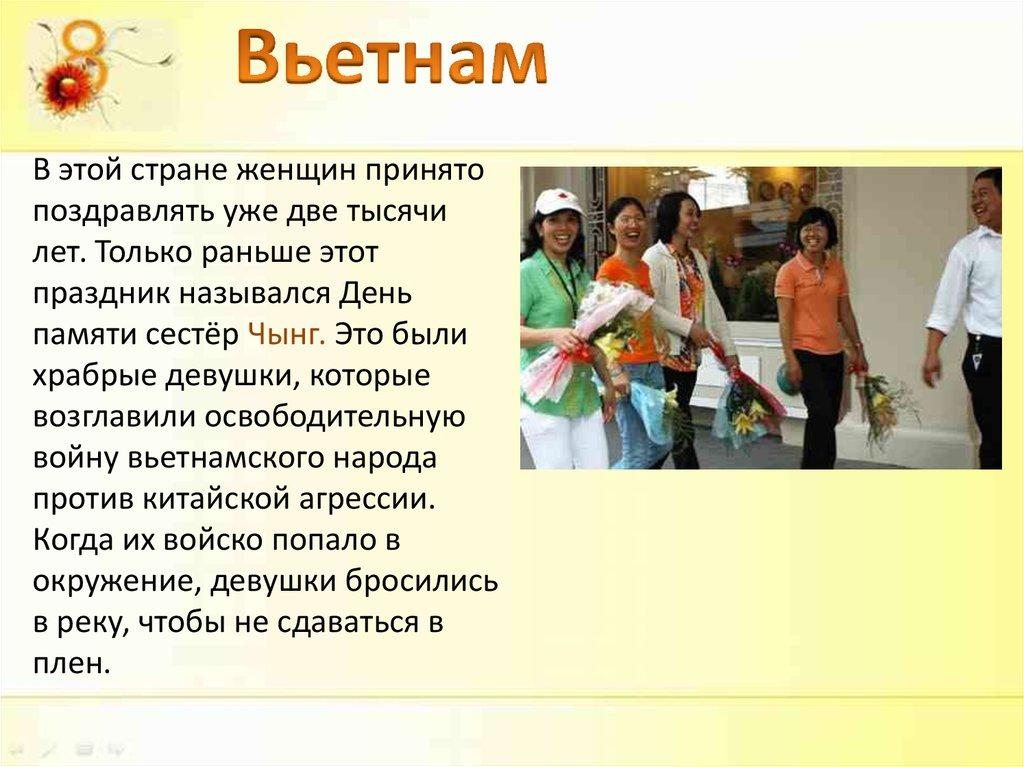 Сейчас в этой стране 8 Марта принимают как приход Весны, какдань любви и уважения к Женщине.