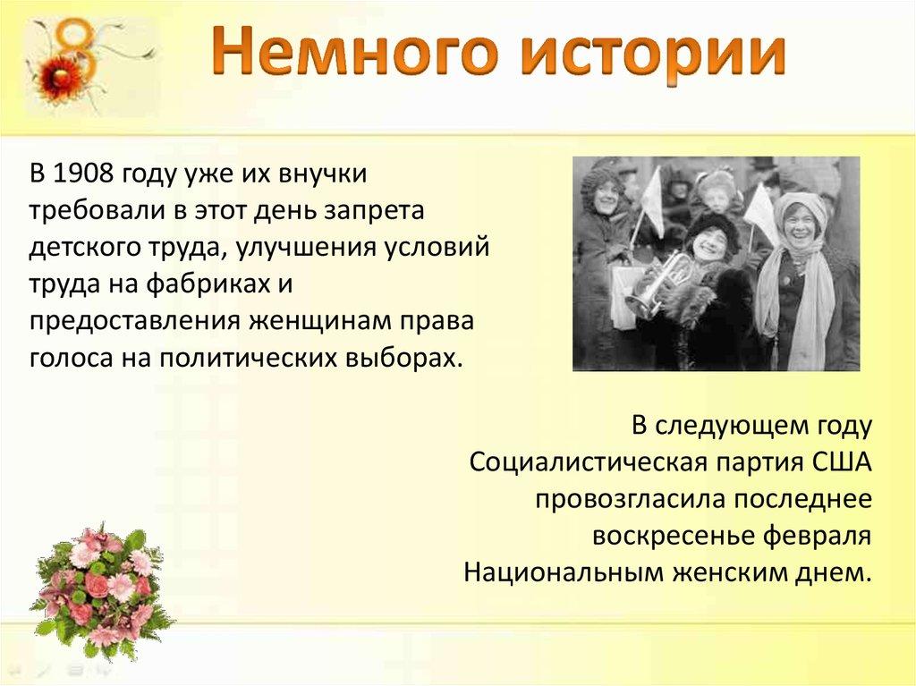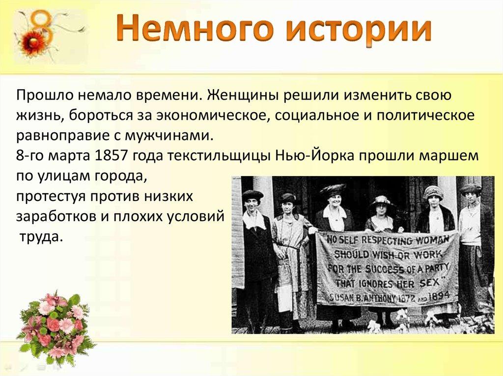 8-го марта 1857 года текстильщицы Нью-Йорка прошли маршем