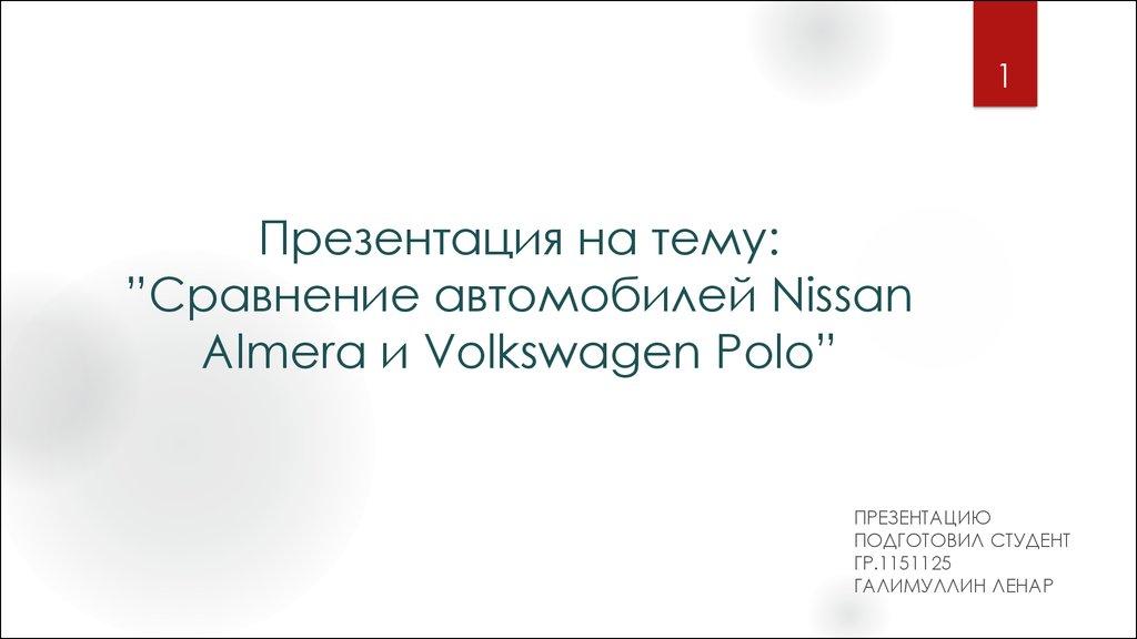 1. Презентация на тему: ”Сравнение автомобилей Nissan Almera и Volkswagen Polo”