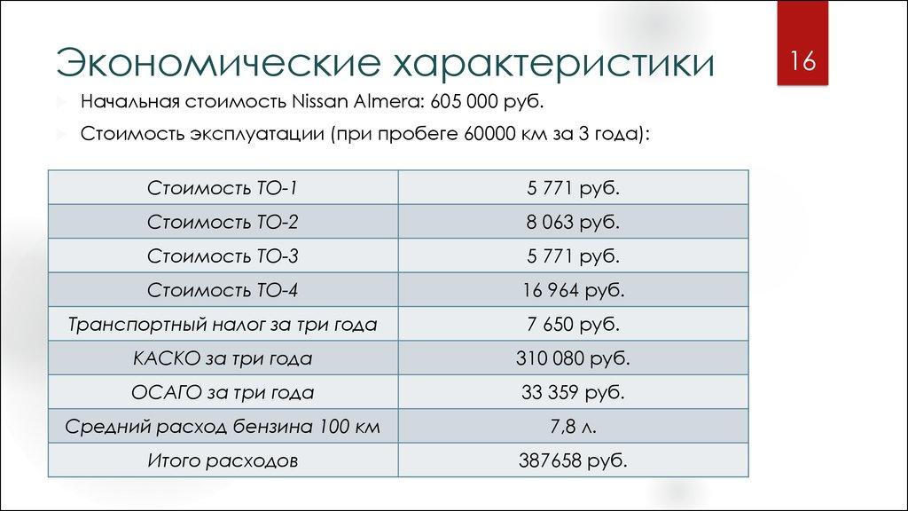 17. Экономические характеристики