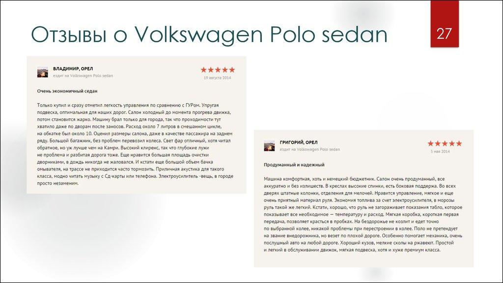 2627. Отзывы о Volkswagen Polo sedan