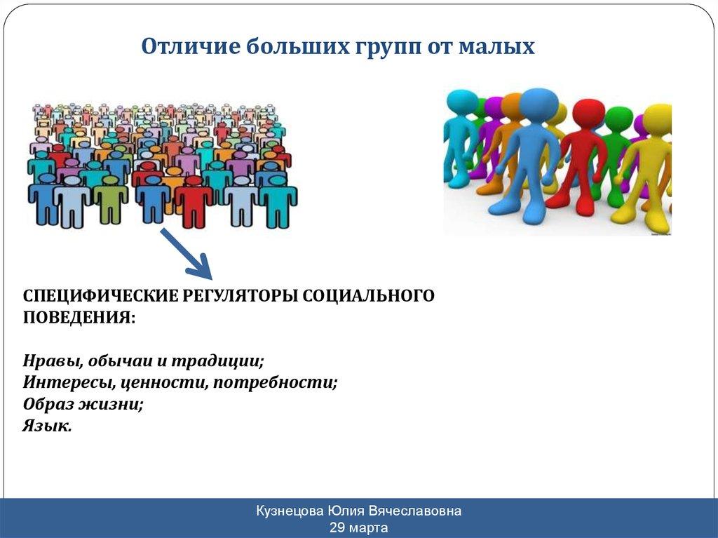 Отличие больших групп от малыхСПЕЦИФИЧЕСКИЕ РЕГУЛЯТОРЫ СОЦИАЛЬНОГО