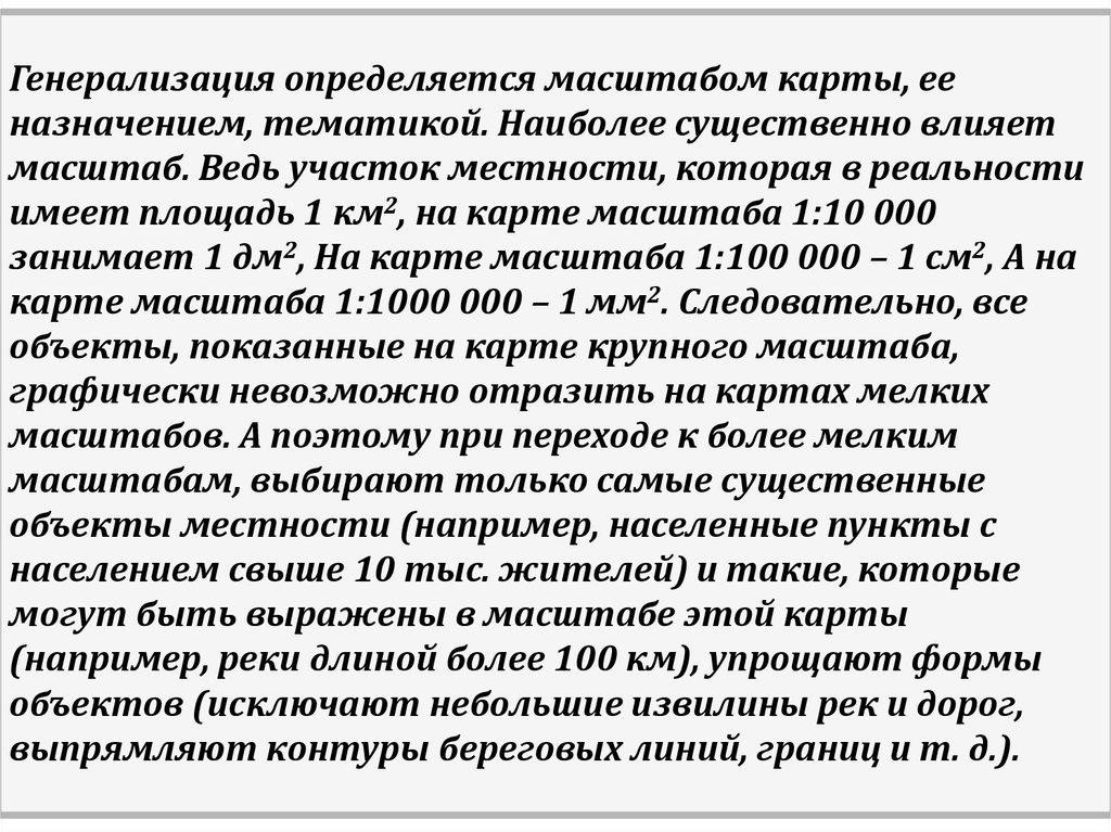 масштабам, выбирают только самые существенные