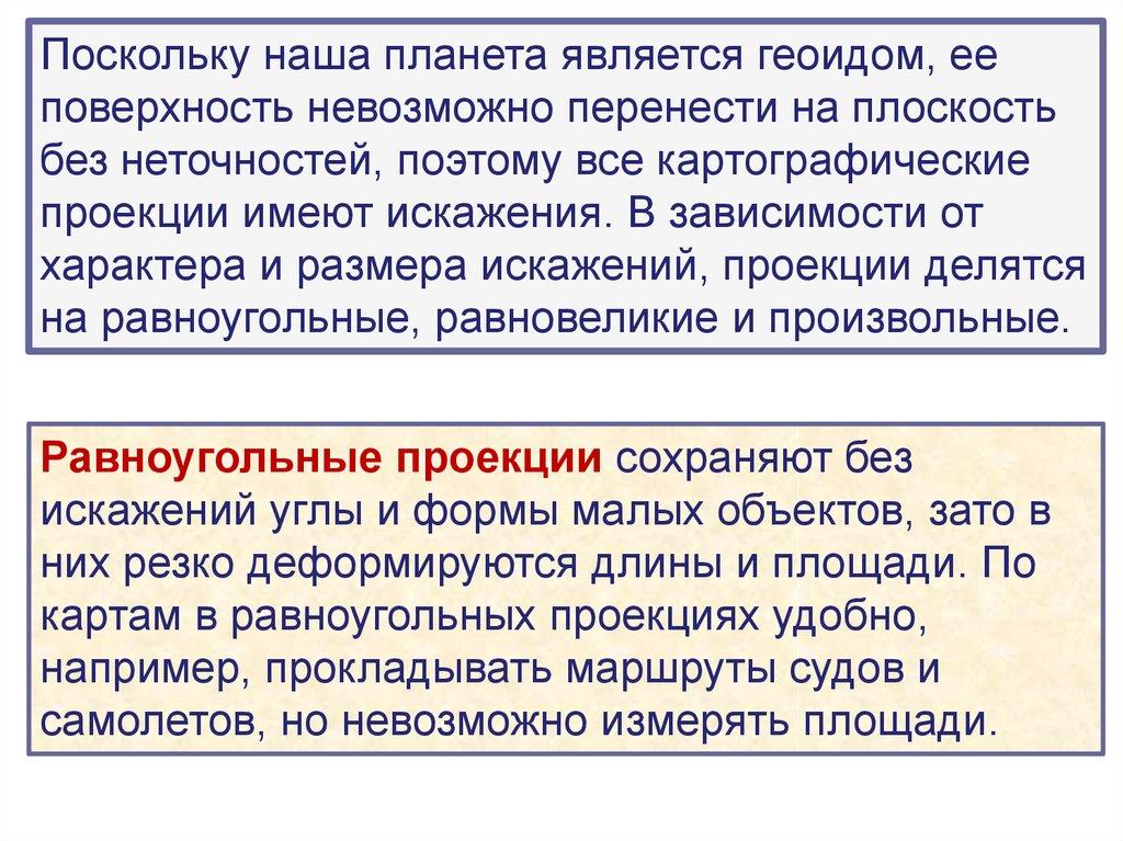 изображена с искажениями, так как нельзя
