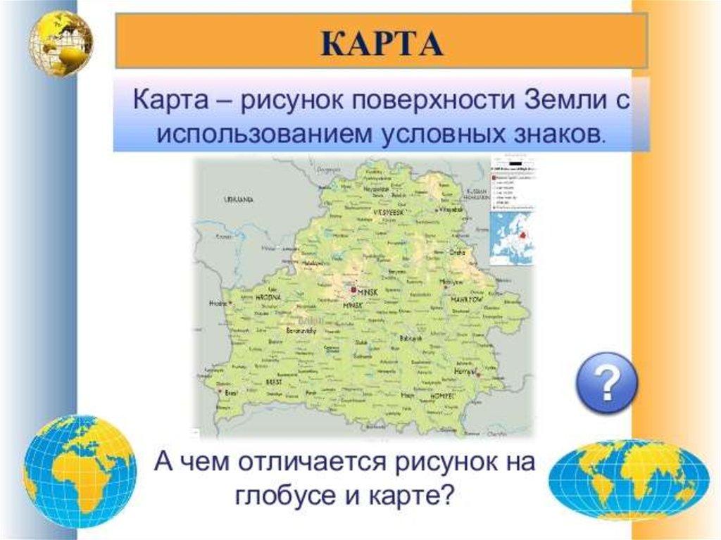глобус. На карте же земная поверхность
