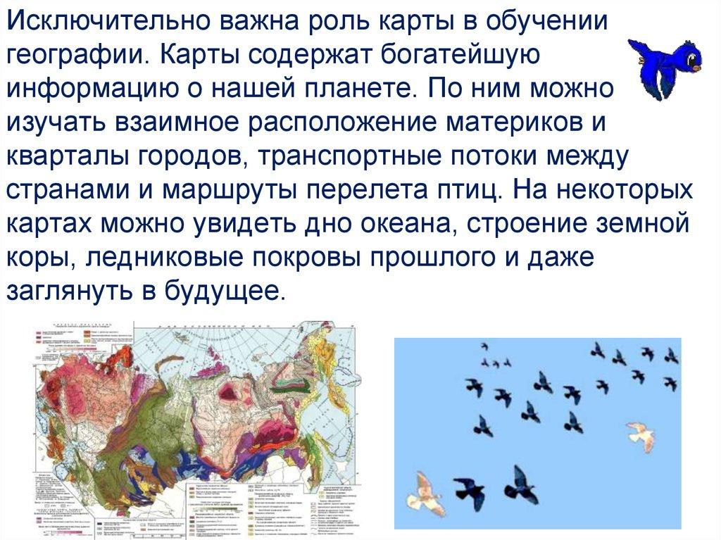 Исключительно важна роль карты в обучениигеографии. Карты содержат богатейшую