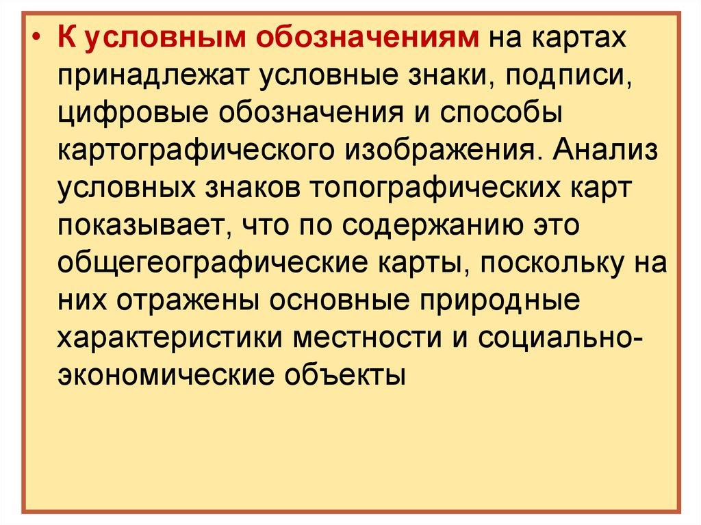 • К условным обозначениям на картахпринадлежат условные знаки, подписи,