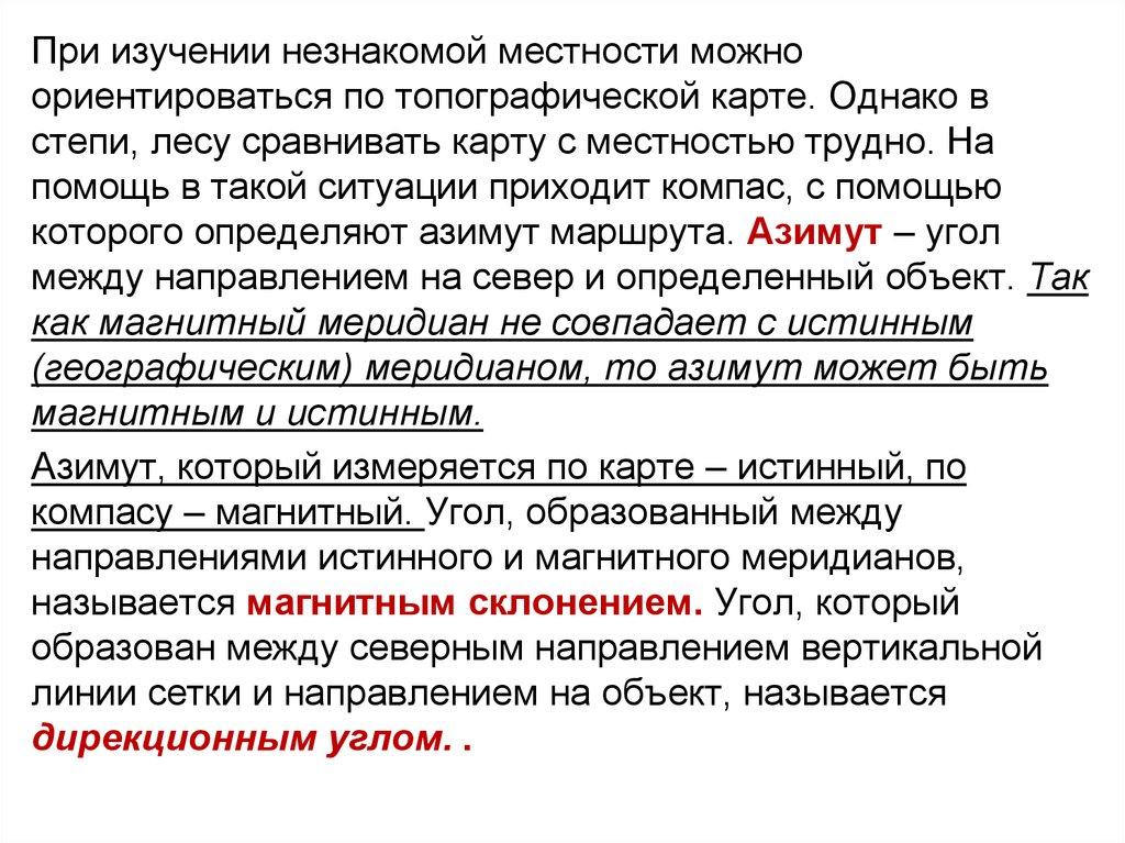 При изучении незнакомой местности можноориентироваться по топографической карте. Однако в