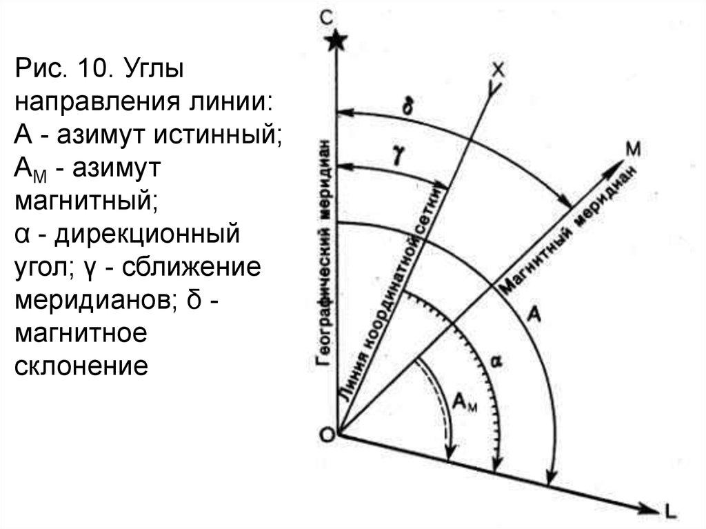 Рис. 10. Углынаправления линии: