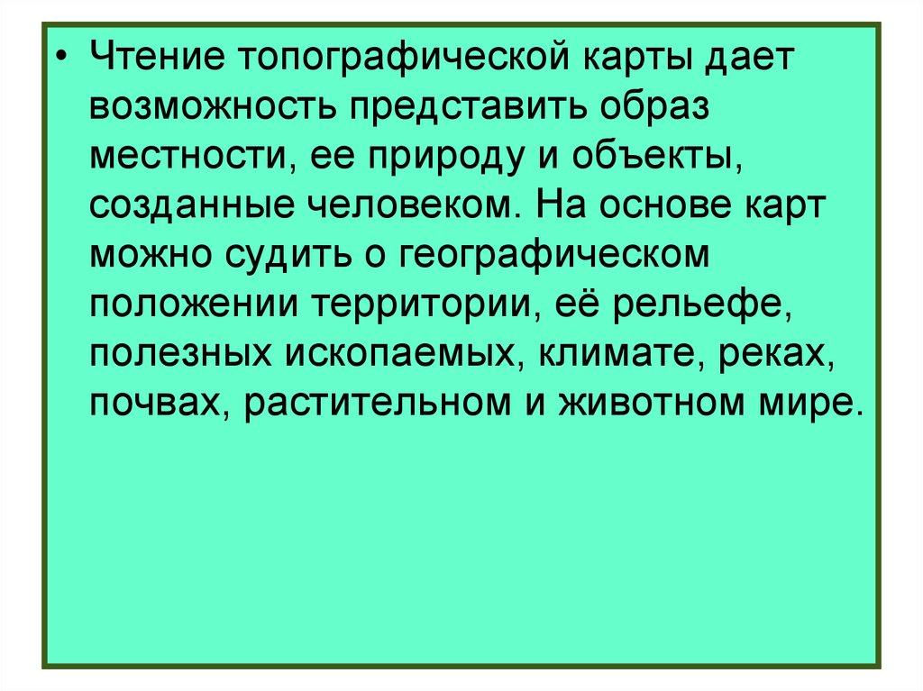 • Чтение топографической карты даетвозможность представить образ