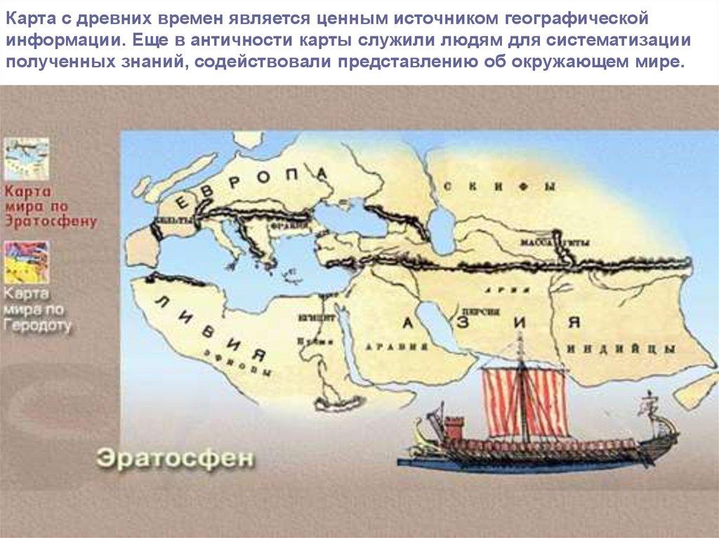 Карта с древних времен является ценным источником географическойинформации. Еще в античности карты служили людям для систематизации