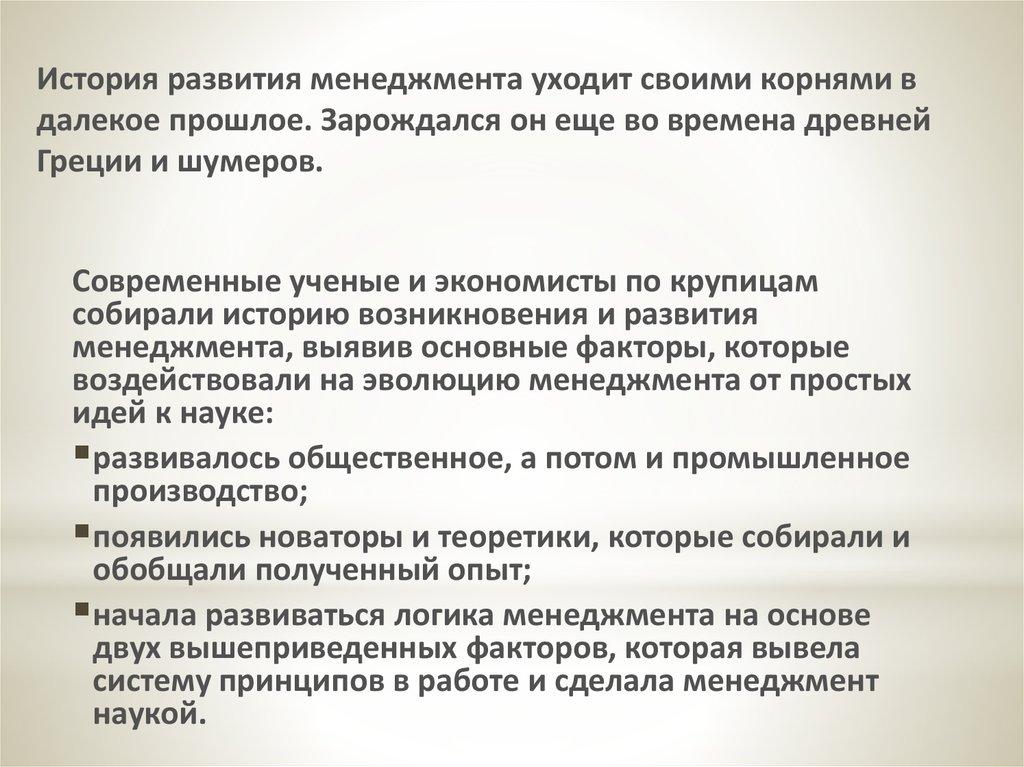 История развития менеджмента уходит своими корнями вдалекое прошлое. Зарождался он еще во времена древней