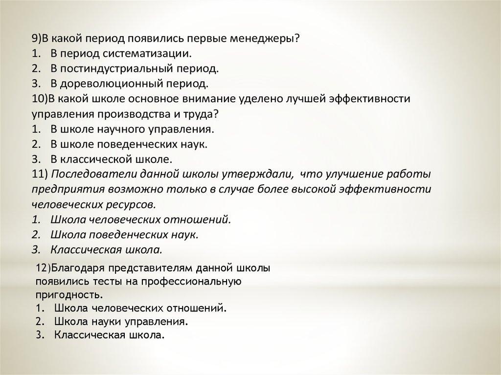 9)В какой период появились первые менеджеры?1. В период систематизации.