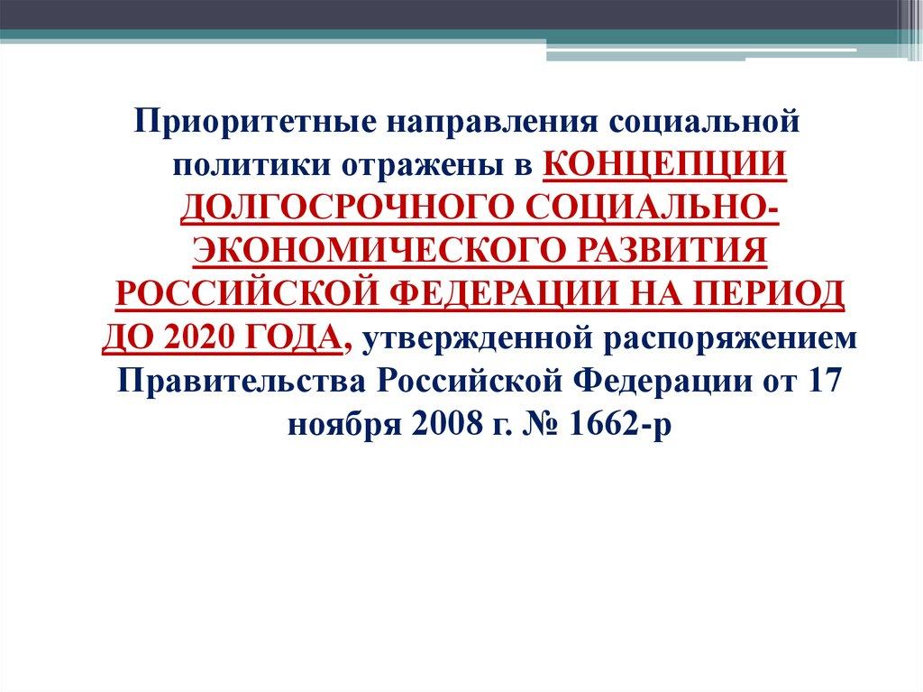 16. Приоритетные направления социальной политики в РФ до 2020 г.:
