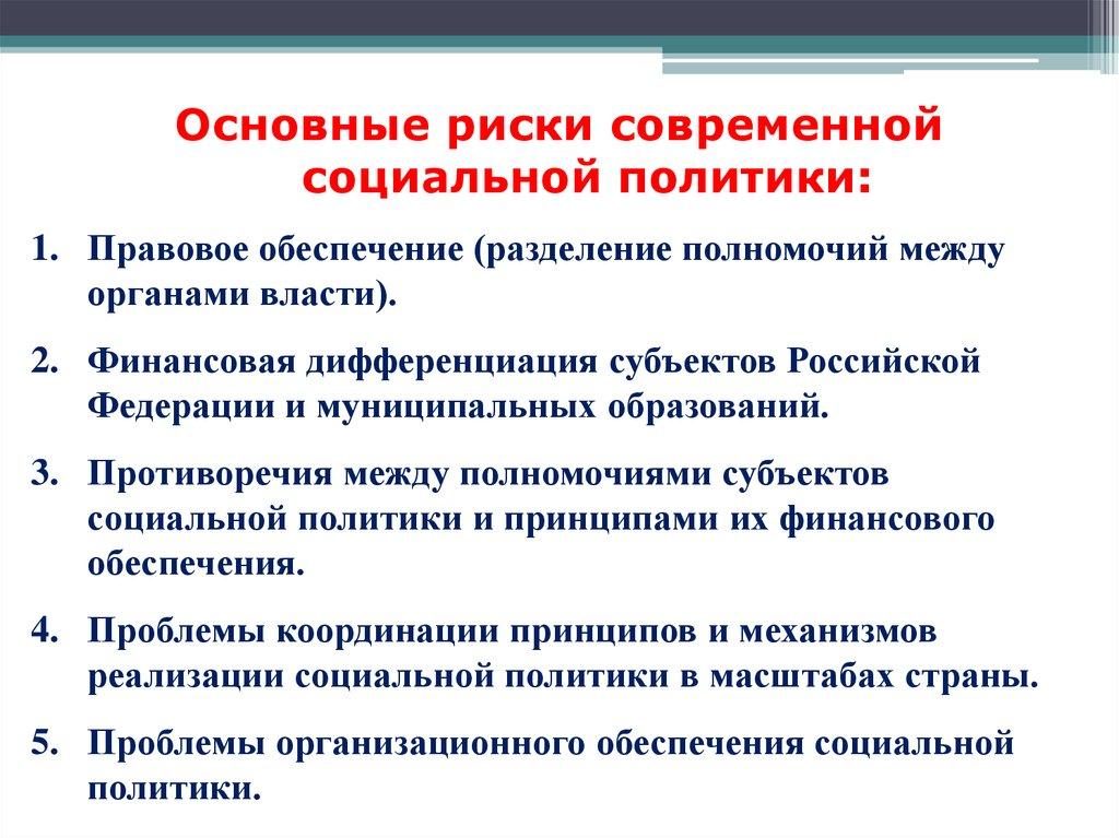 Основные риски современнойсоциальной политики: