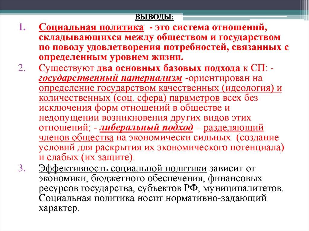 Социальная политика - это система отношений,