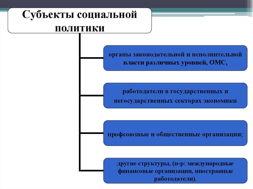 Субъекты социальной политики это организационные структуры, которые наделе или на словах представляют в