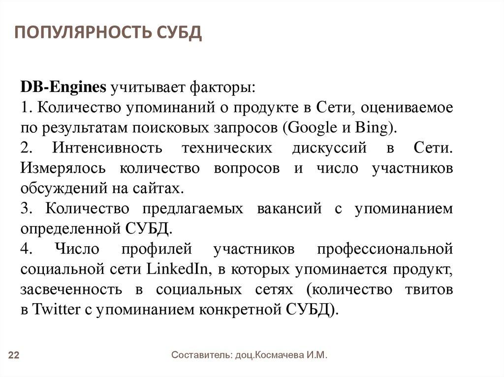 носителе - эта функция остается за БД. Всеми перечисленными функциями