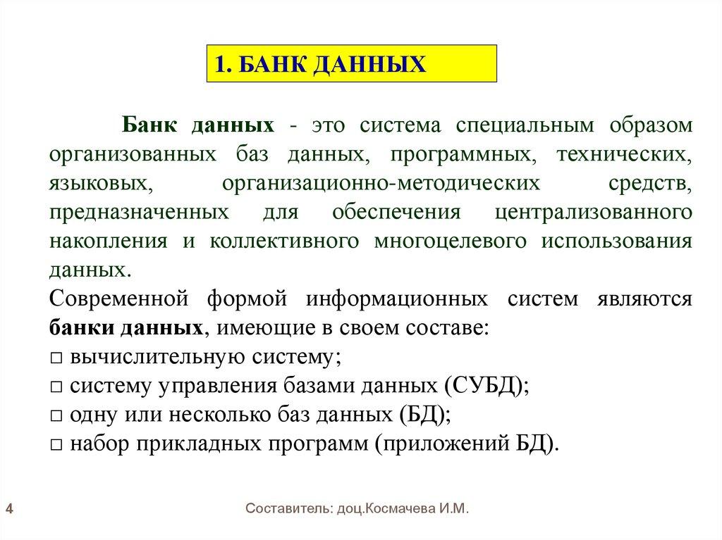 1. БАНК ДАННЫХБанк данных - это система специальным образом