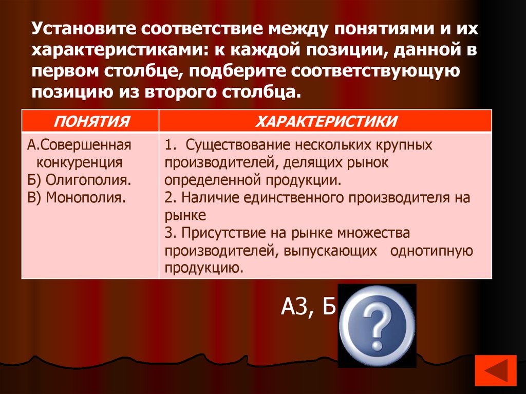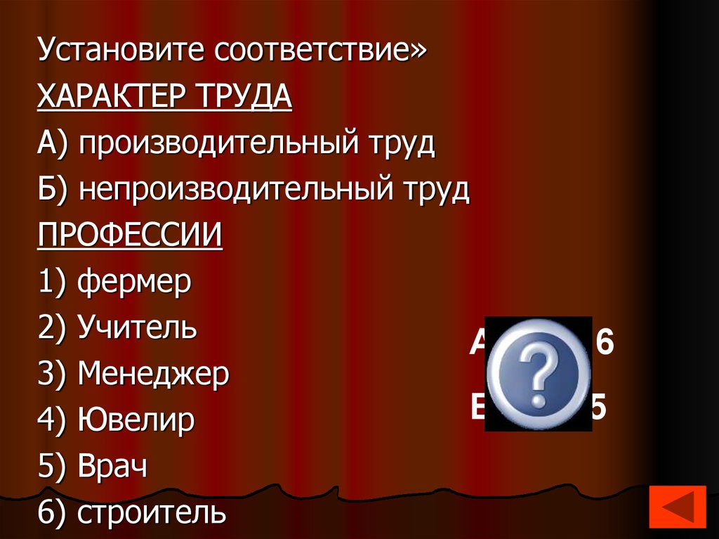 Установите соответствие»ХАРАКТЕР ТРУДА