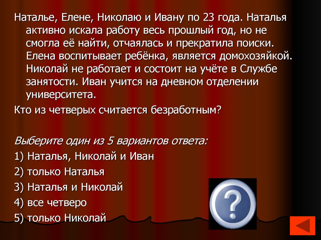 Наталье, Елене, Николаю и Ивану по 23 года. Натальяактивно искала работу весь прошлый год, но не