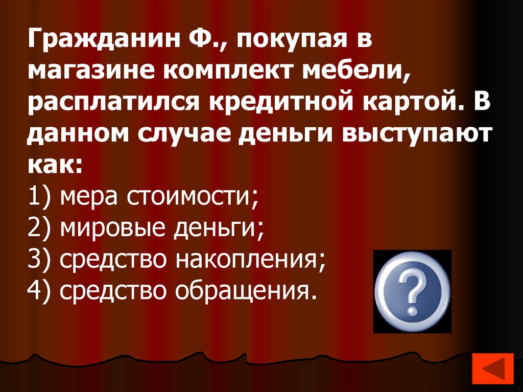 Гражданин Ф., покупая вмагазине комплект мебели,