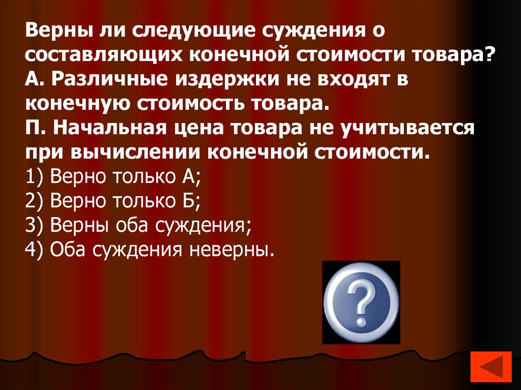 Верны ли следующие суждения осоставляющих конечной стоимости товара?