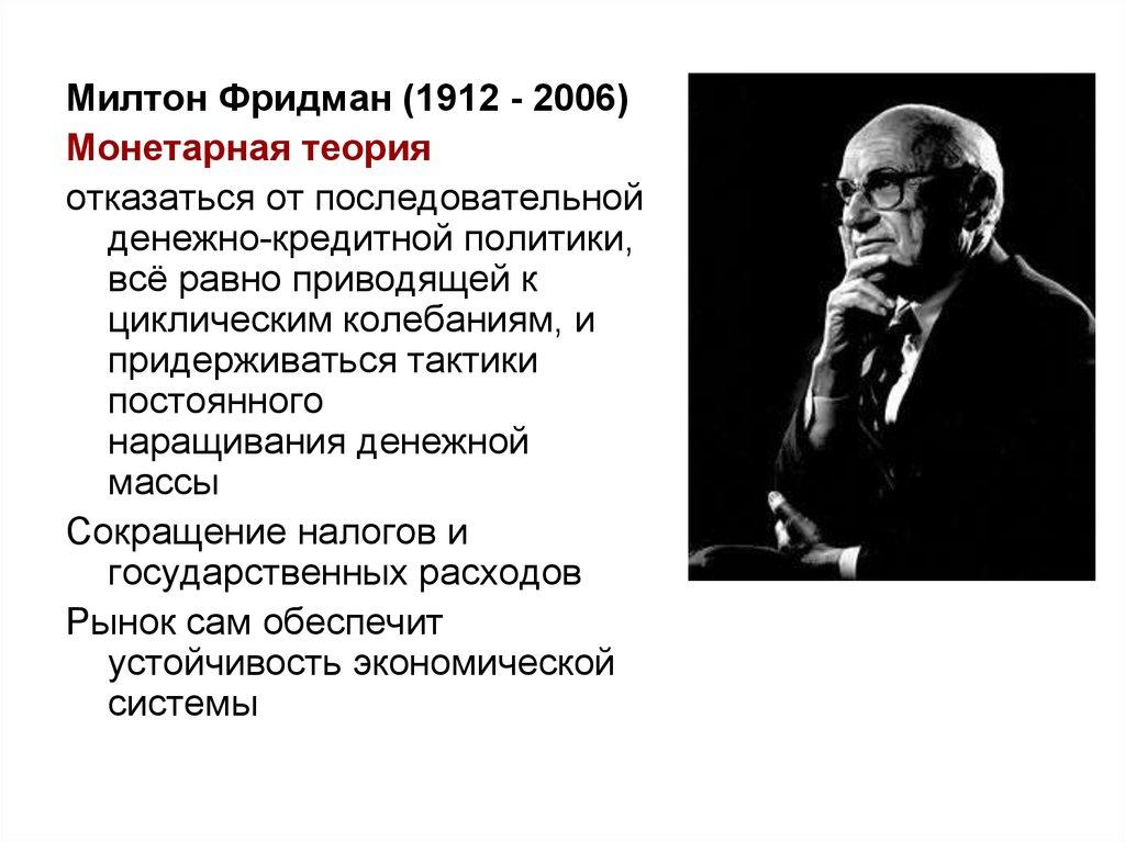 Милтон Фридман (1912 - 2006)Монетарная теория