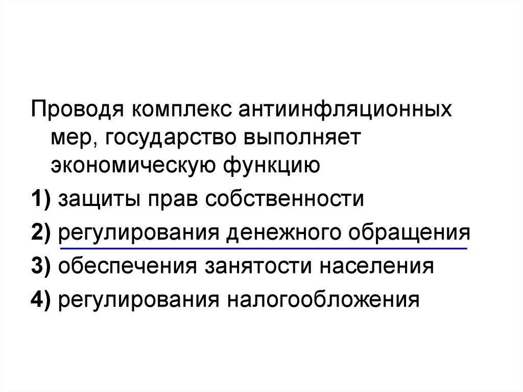 Проводя комплекс антиинфляционныхмер, государство выполняет