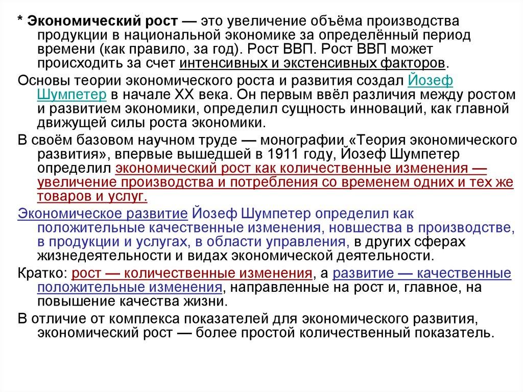 * Экономический рост — это увеличение объёма производствапродукции в национальной экономике за определённый период