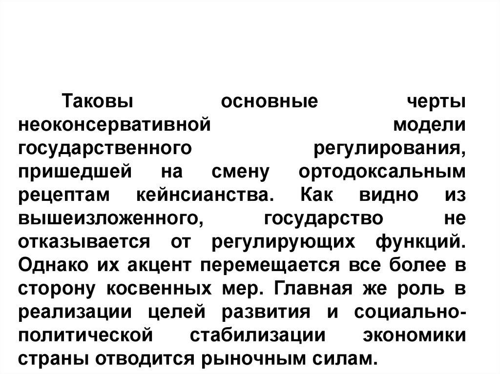 7. Подводя итог анализу кейнсианской модели регулирования, отметим, что ее главными чертами являются: