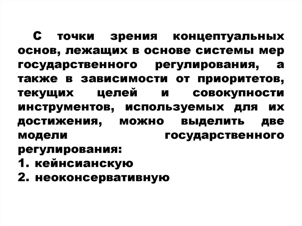 Определяя цели государственного регулирования наконкретно временном отрезке, государство