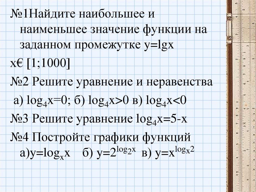 13. Решить уравнения и неравенства а) lоg4x=0; б) lоg4x>0 в) lоg4x<0