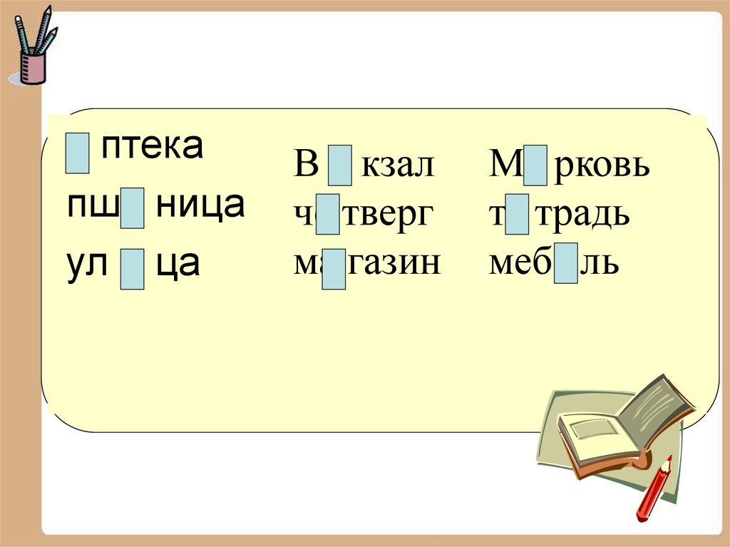 13. Запишите слова. Вставьте попущенные буквы.
