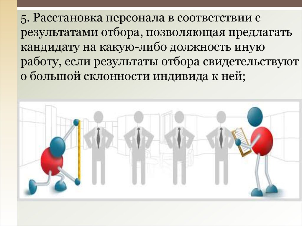 5. Расстановка персонала в соответствии срезультатами отбора, позволяющая предлагать