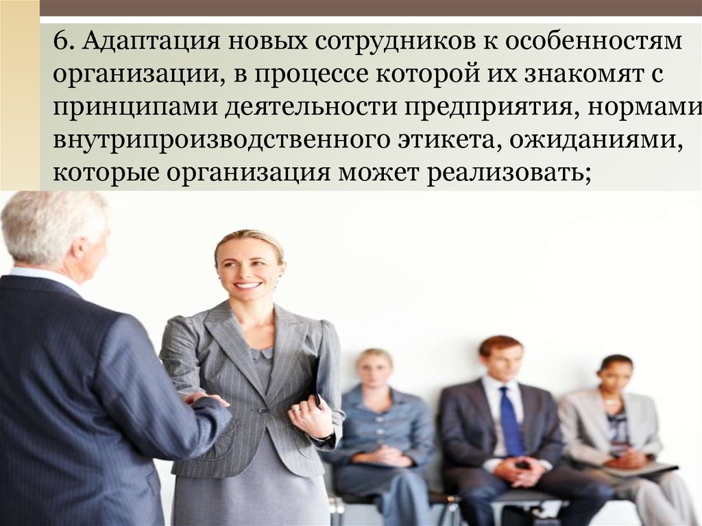 6. Адаптация новых сотрудников к особенностяморганизации, в процессе которой их знакомят с