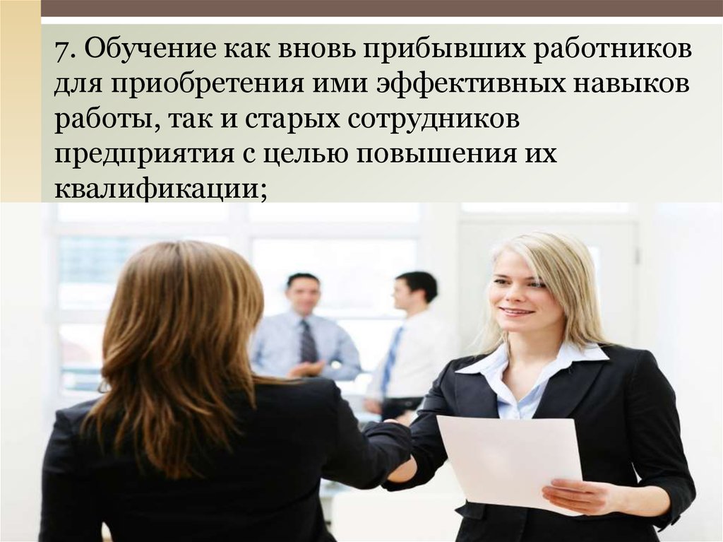 7. Обучение как вновь прибывших работниковдля приобретения ими эффективных навыков