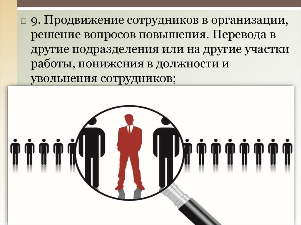 9. Продвижение сотрудников в организации,решение вопросов повышения. Перевода в