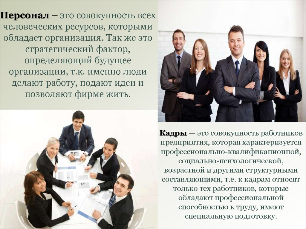 Персонал – это совокупность всехчеловеческих ресурсов, которыми