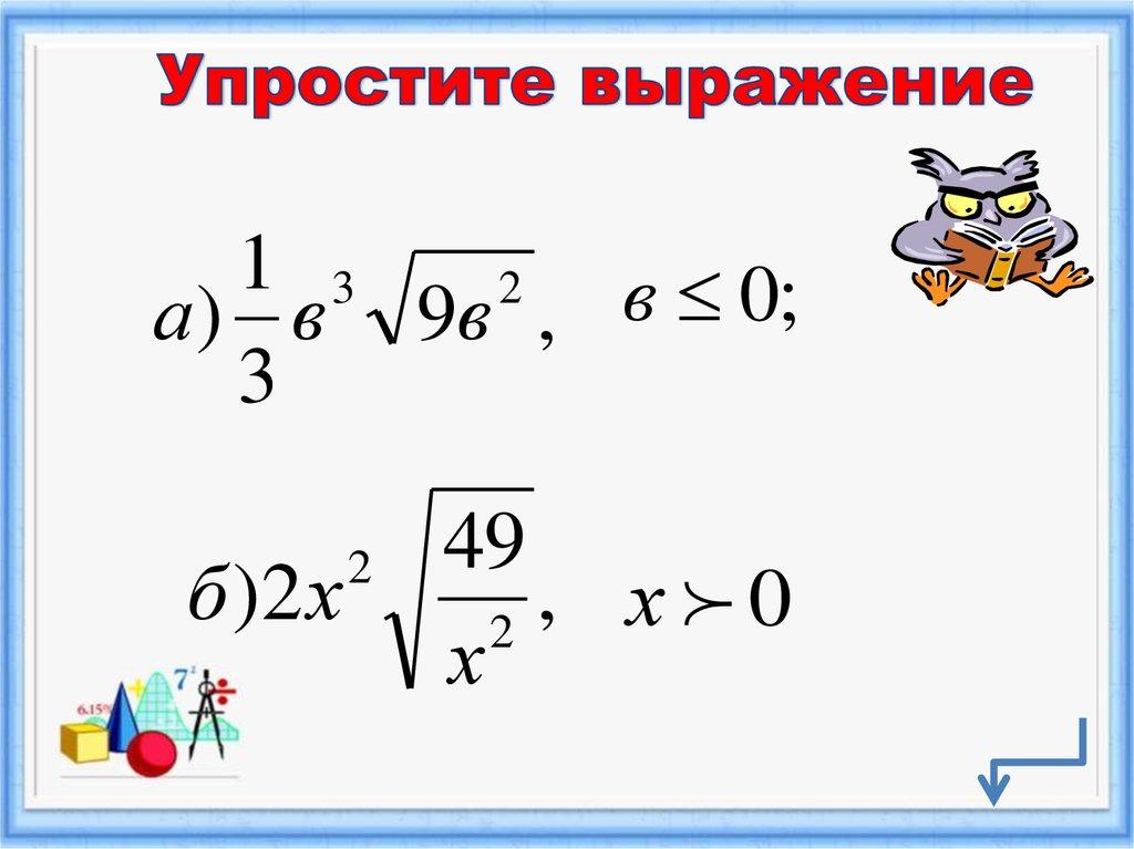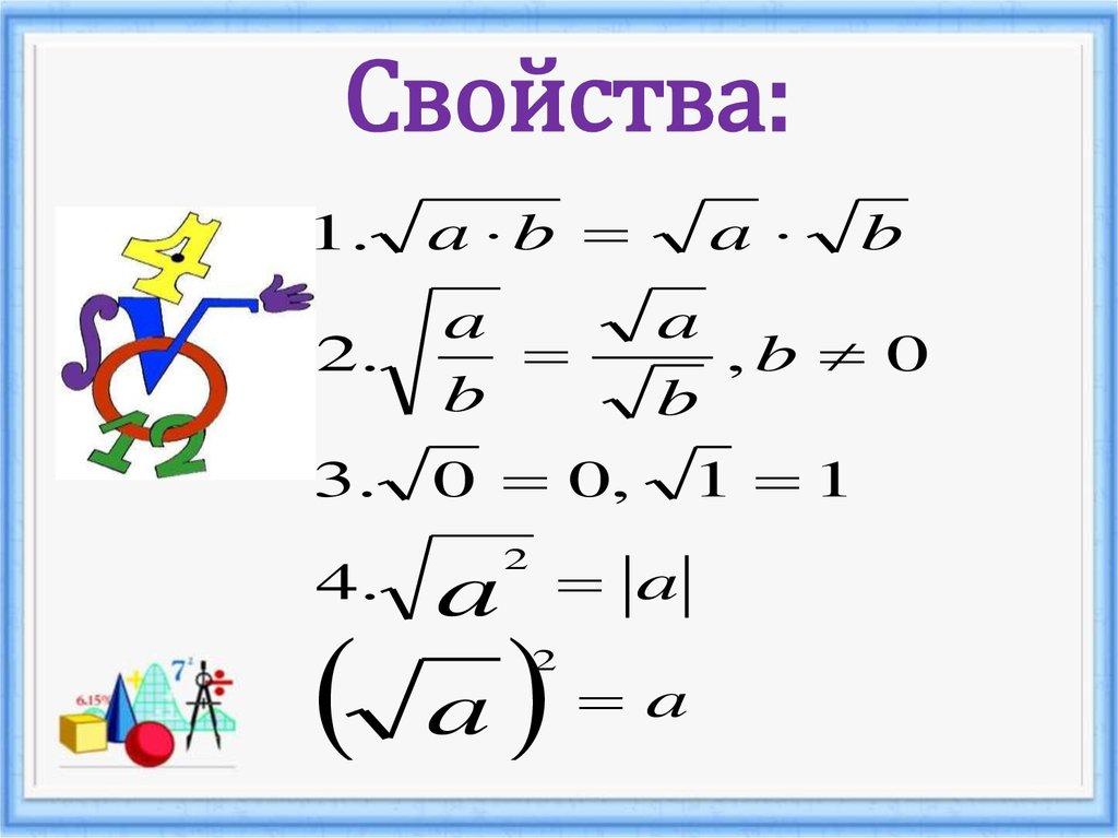 Свойства арифметического квадратного корня